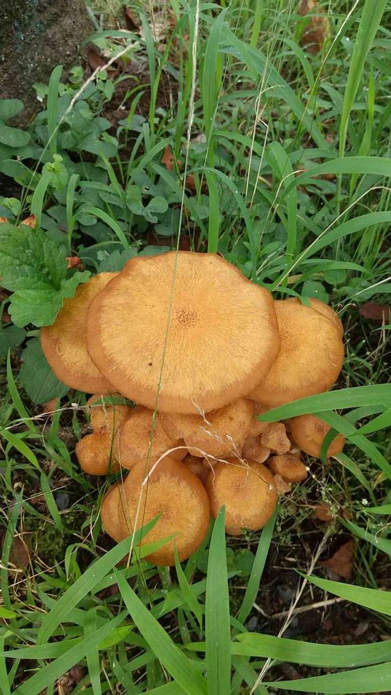 今googleで調べ直してみました。勘違いしてたみたいです。最初に出たのが「オオワライタケ」だったのでそう書きましたが、どうも良く調べてみると「ナラタケモドキ」みたいです。(;^o^)早速修正します(*- -)(*_ _)ペコリ