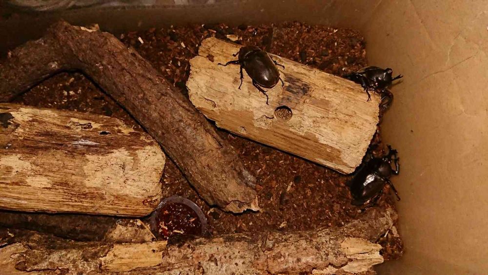 去年つがいでいただいたカブトムシが卵をうんで、5~6匹出てきました🙌