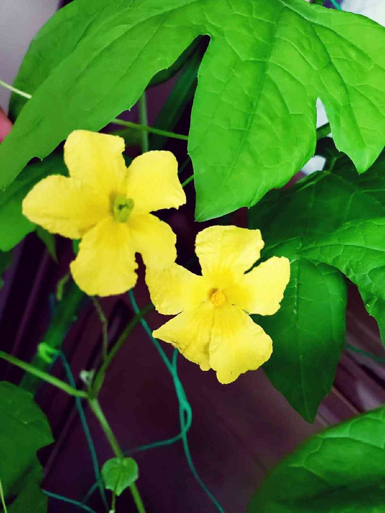 もう既に、小さなゴーヤの赤ちゃんを花の下に携えていました🌸