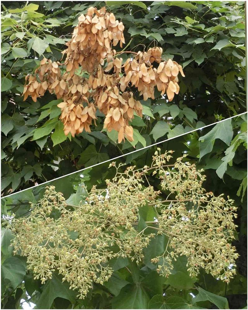 近所の公園に薄黄色の花がたわわに咲いています。(下のpic)昨年ひと際目立つ木の実(上のpic)が房状にぶら下がっているのを見ていたのでアオギリ(青桐)とすぐ分かりました。
