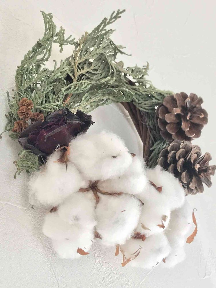 綿ってやっぱりリースとか冬の材料に最適ですね✨皆さんのリースやスワッグを見せていただいて感じます😊