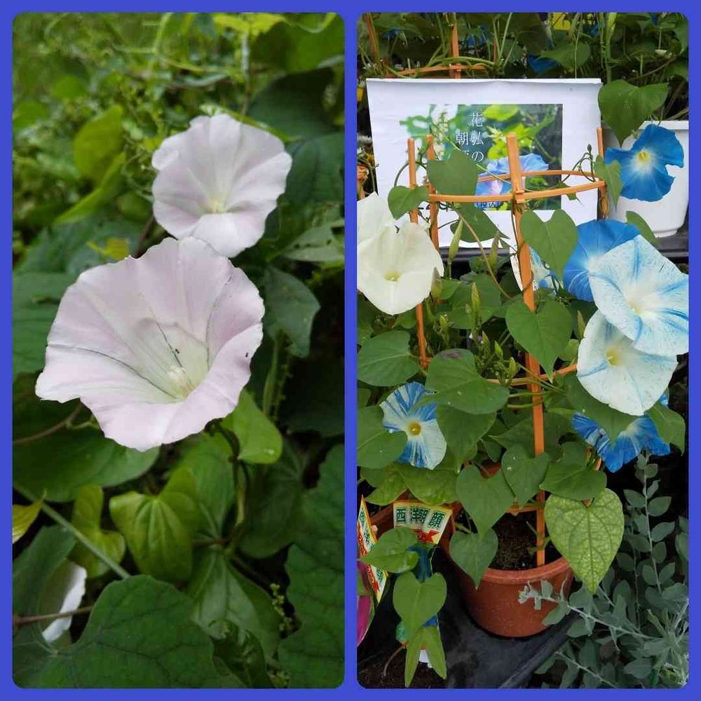 ㊧は夕顔、斑入りの朝顔が涼しげ😍✨