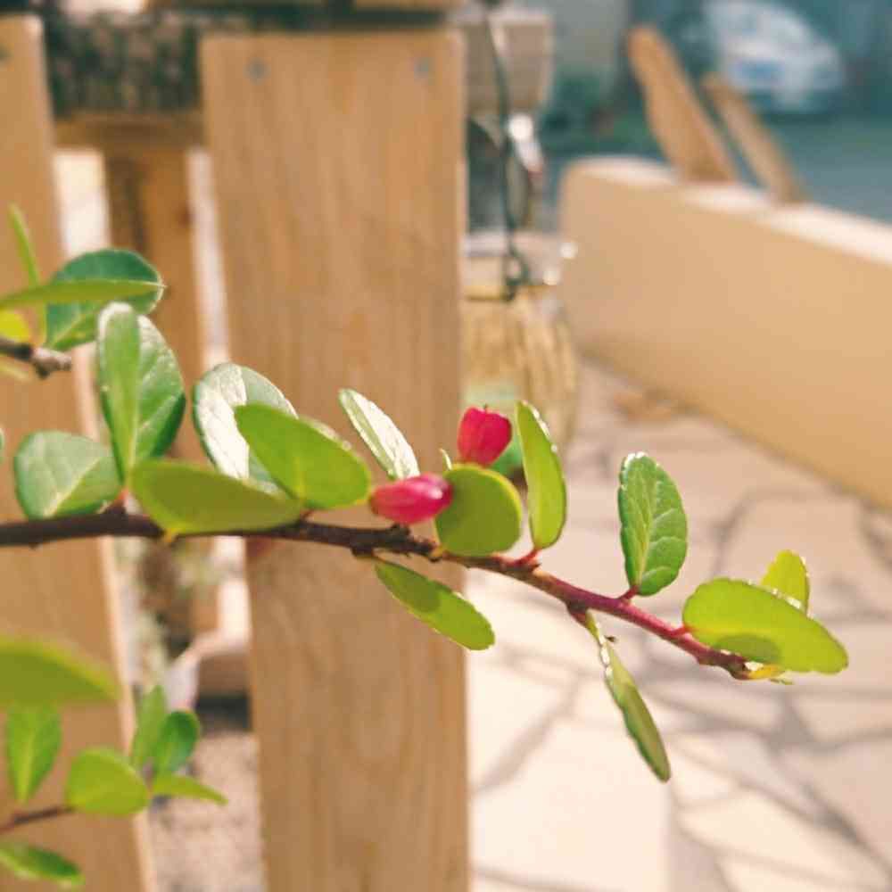 旦那さんが実家からもらってきた盆栽に赤い実がなってます。