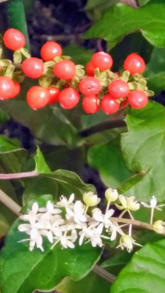 ほんと!💚の葉っぱに紅白の実と花🌼❣️🌼見ててとてもいい感じです💖✨✨