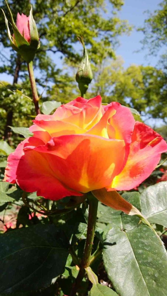 青空とバラの元気カラーが最高です😃🎶