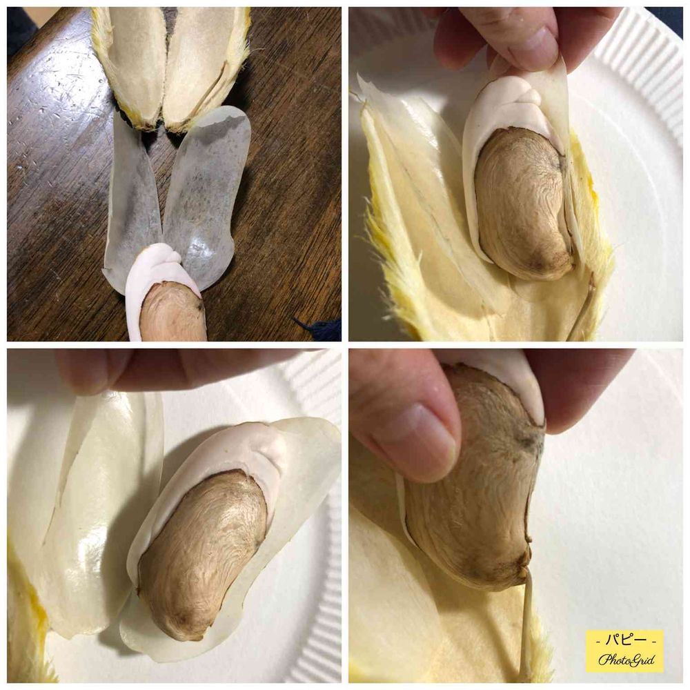 綺麗に剥がれる種もあるけどなかなか剥がれない皮もあるのでそれはそれでお水に浸して置くと新芽が生えてきますよぉ~