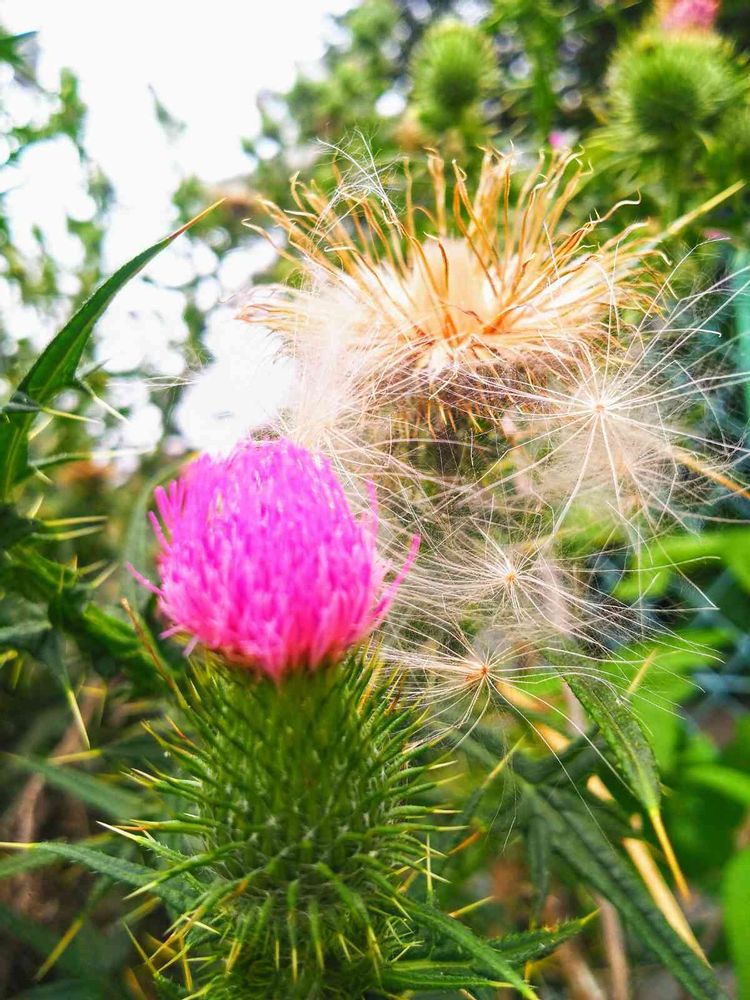花の部分もトゲトゲになっていてそれこそ怪我しますよね。日本のアザミは花の部分にトゲはありません。