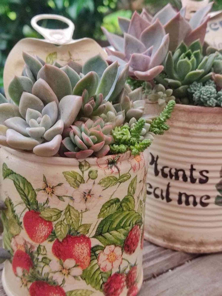 かわいいいちごリメ缶と寄せ植え♡
