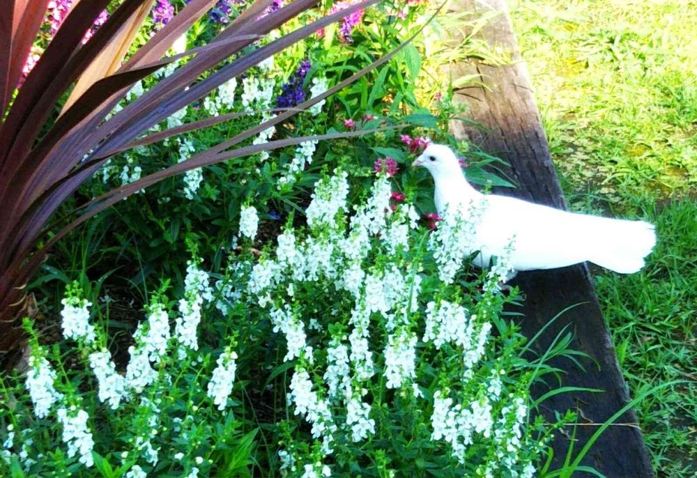 花壇に白い鳩さん