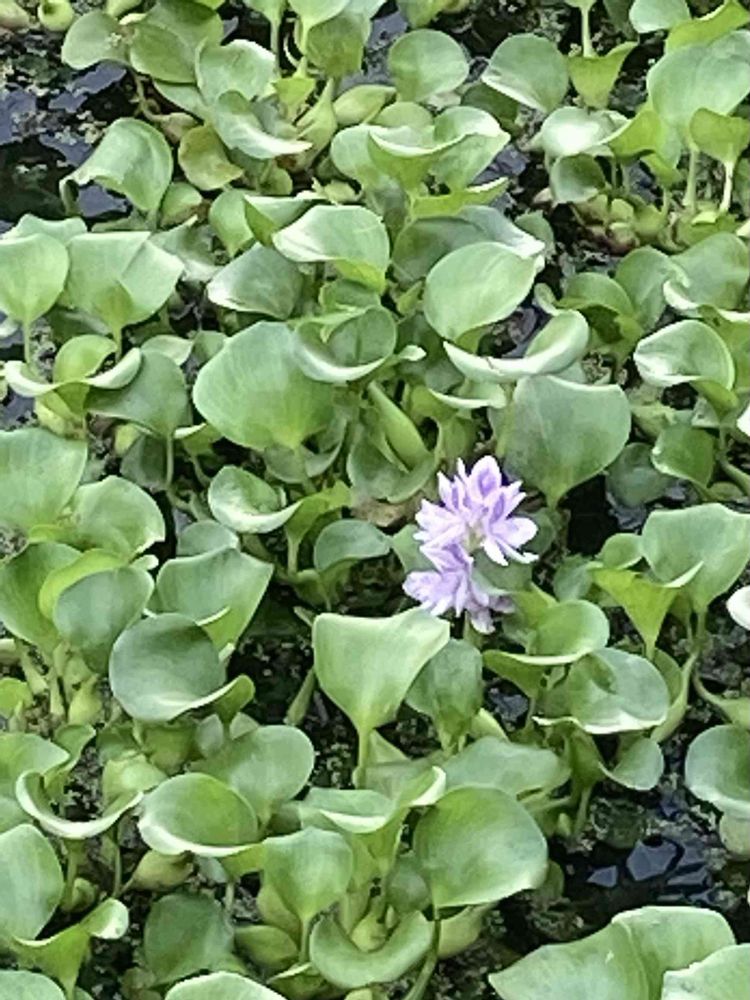 ウォーキングで通る大池の片隅、ホテイアオイに花が咲いてました✨✨