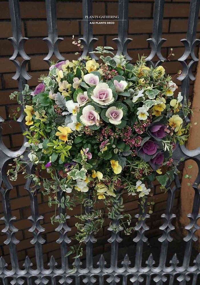 葉ぼたんとビオラのウォールバスケット(^-^)