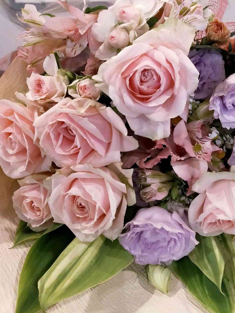 今、そろそろお目目👀閉じて〜と思ったら、ピンクの可愛らしいばら🌹のブーケが💕💕💕