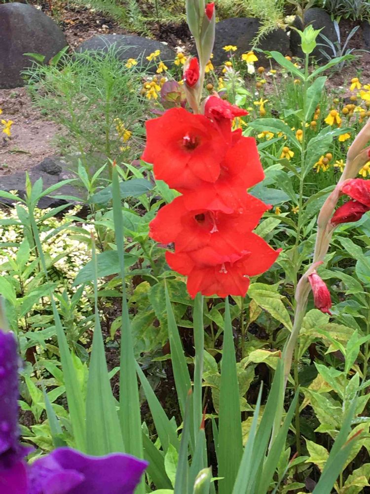 少しずつ植え時をずらして植えたグラジオラス、長くお花を楽しめます。