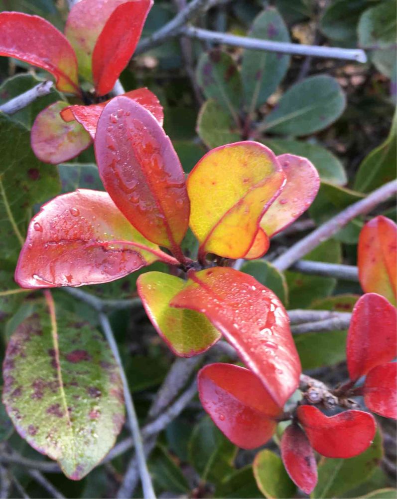 シャリンバイの葉が色づいて朝露に濡れてます❣️