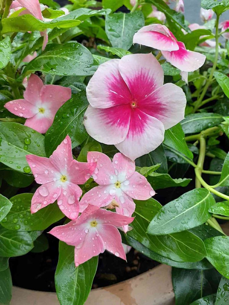 とっても、かわいくて、オシャレなニチニチソウ😍雨粒が涼しそう😆☔️私は、値下げ品の、小さいお花のニチニチソウお迎えしました🎶😁
