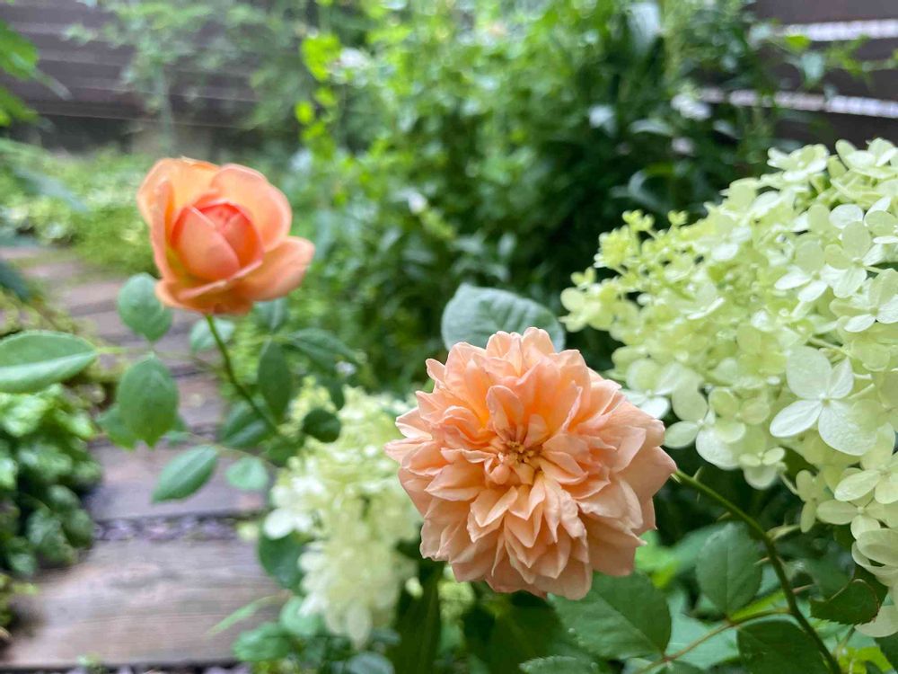 ソラミちゃんのお庭、優しいオレンジのバラがいっぱいだね🧡