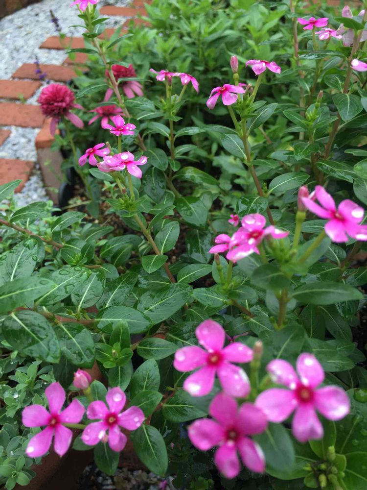 小さな庭,ニチニチソウ ミニナツ ストロベリー,ガーデニングの投稿画像