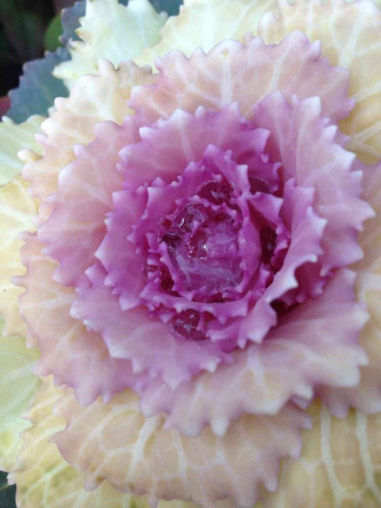 寒い朝、葉牡丹の真ん中に溜まった水分がキラキラと凍っています❄️