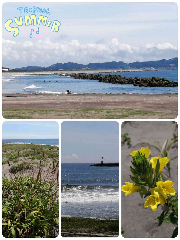 さん♥Morning〜❣砂地にワイルドに咲く花はパワーを感じますね〜😊💞 🌊波の音に癒されました🙌