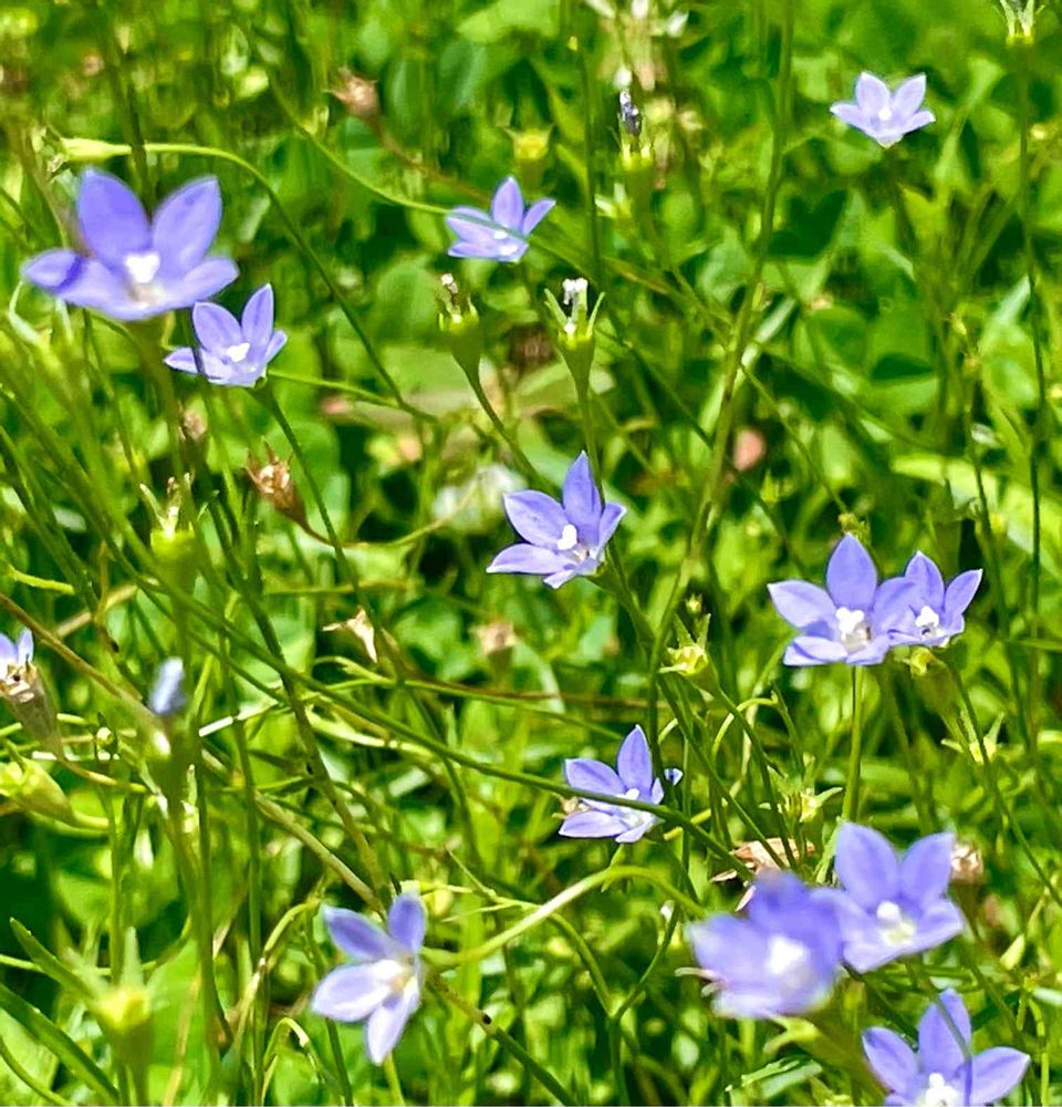 団地の草刈りで刈り取られていたヒナギキョウが、また伸びてきて可愛いお花を咲かせています♫