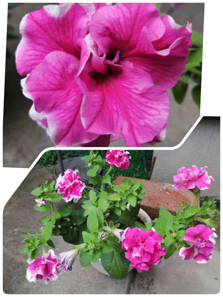 ピンクに白い八重のペチュニアです🌺🌺🌺🌺🌺
