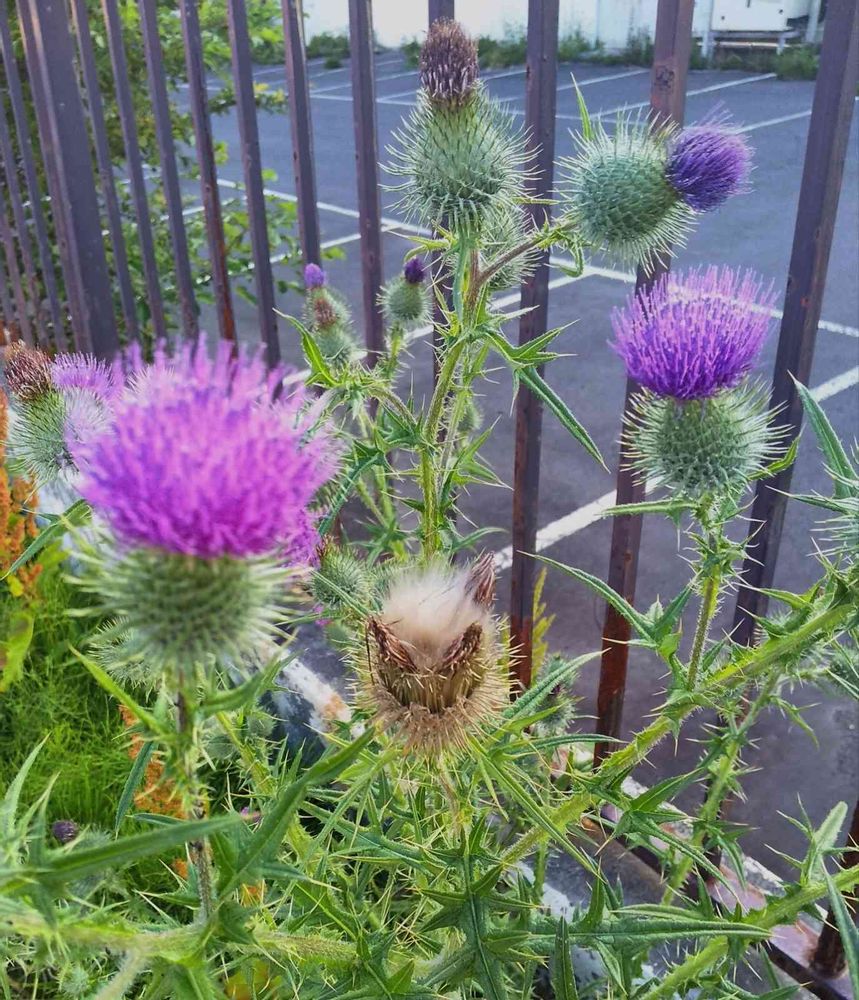 きれいですが植物全体が鋭いトゲになっていて怪我をします。日本のアザミとは比較にならないくらい危険な植物です。