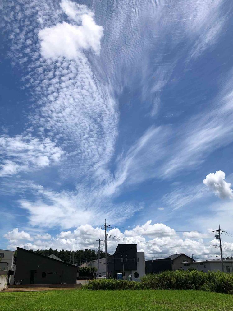 ウロコ雲、筋雲、綿雲など一度に色んな雲が登場しました。