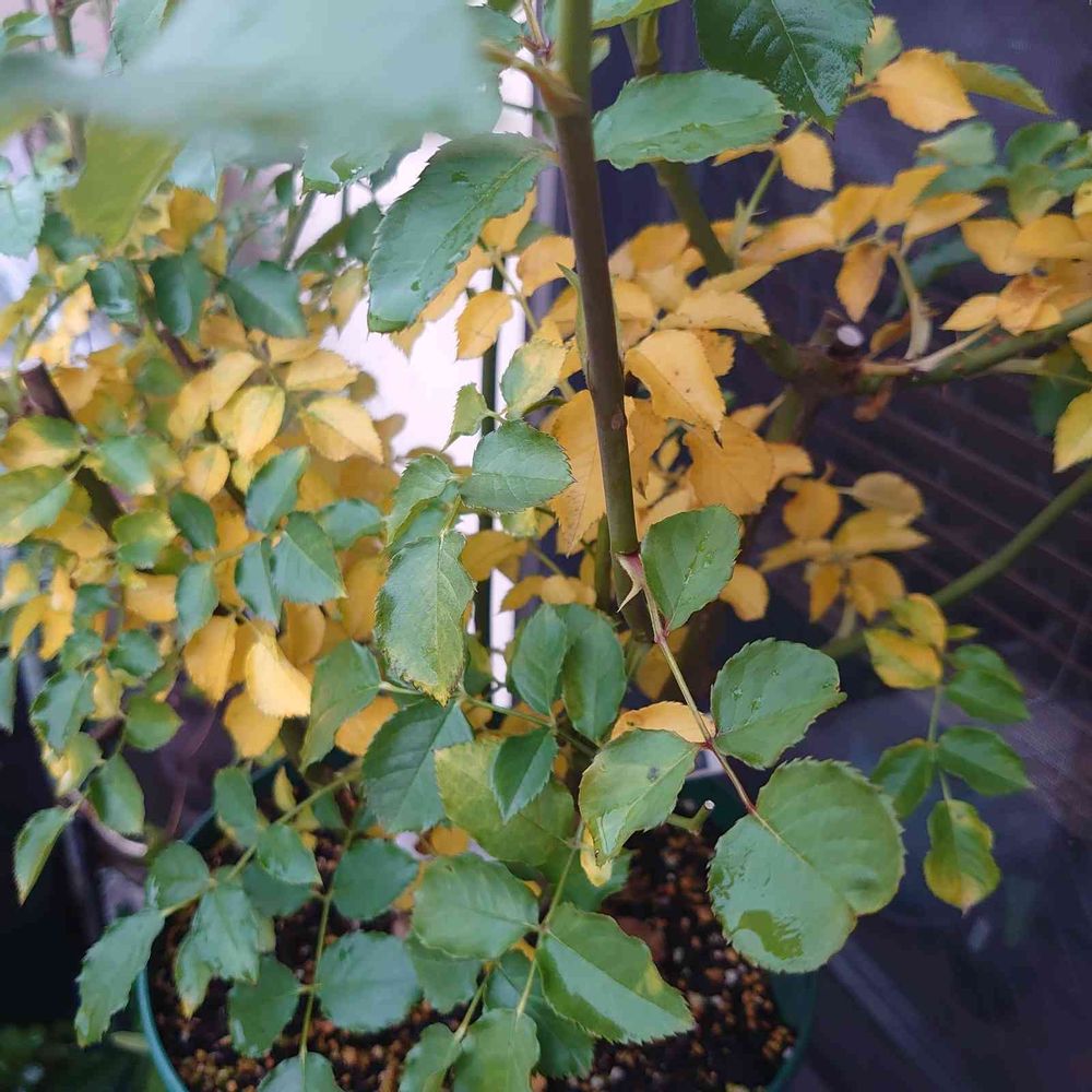 バラのシェエラザードの葉っぱが急に黄変しだしました。ながあめのために根腐れしたのでしょうか?どうしたらよいかご教示ください。