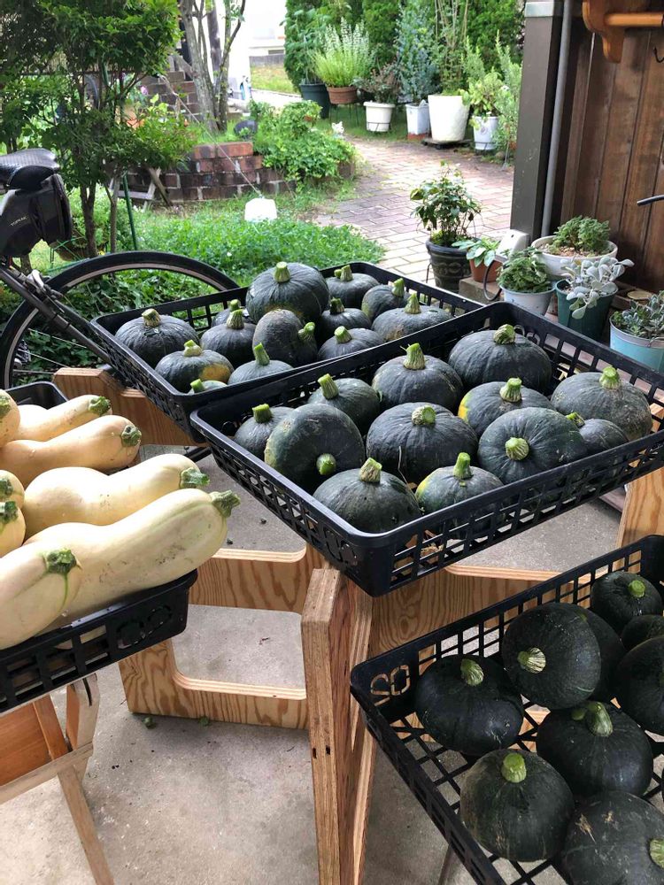今年、実家の畑を借りて3株植えた栗坊🎃60個、バターナッツ15個収穫しました。