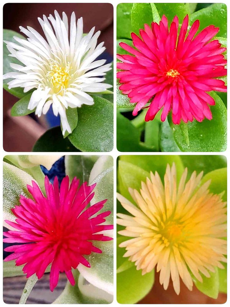 さん 濃いピンクでもみどりの葉と斑入りの葉 黄色を見つけた時はテンション上がりました🎵白は名前わからないけど葉は少し小さめ茎が固いです。でも花は同じようですよね😄✌