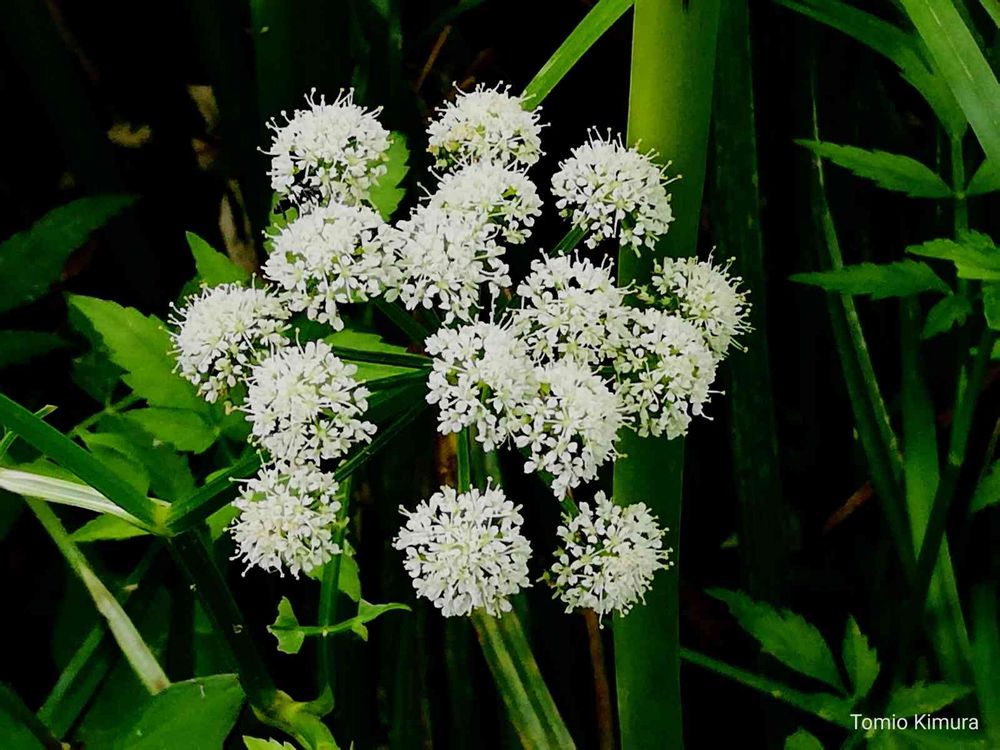 散歩道(京都丹波亀岡 南郷池)の水辺のセリの花が満開です。