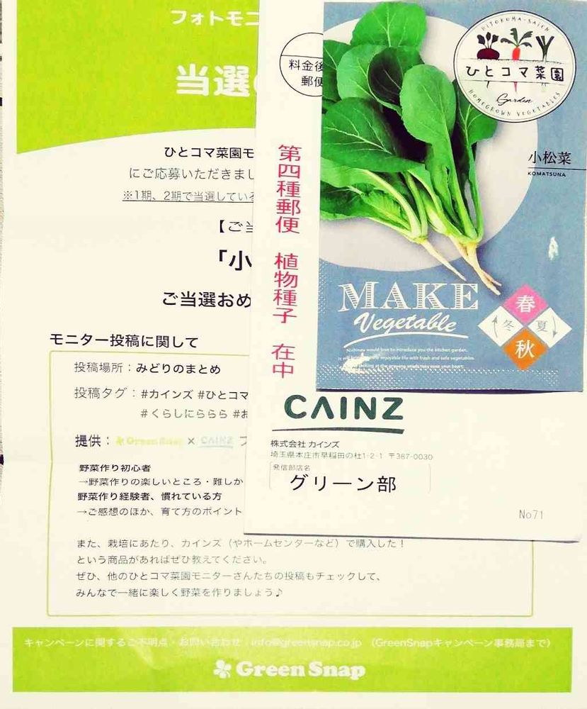 当選は、最初のサラダミズナだけでしたが、cainzさんの好意で、二回目、三回目、も送付して頂いています。