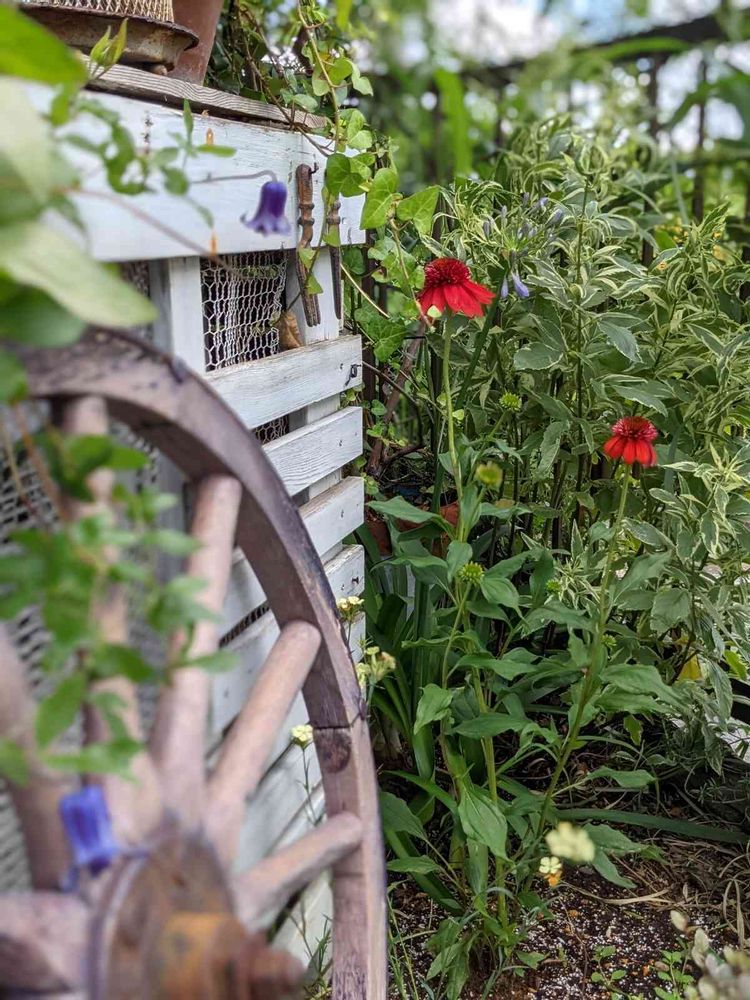 クレマチスやエキナセアなどが植えられていて素敵な眺めですね🥰