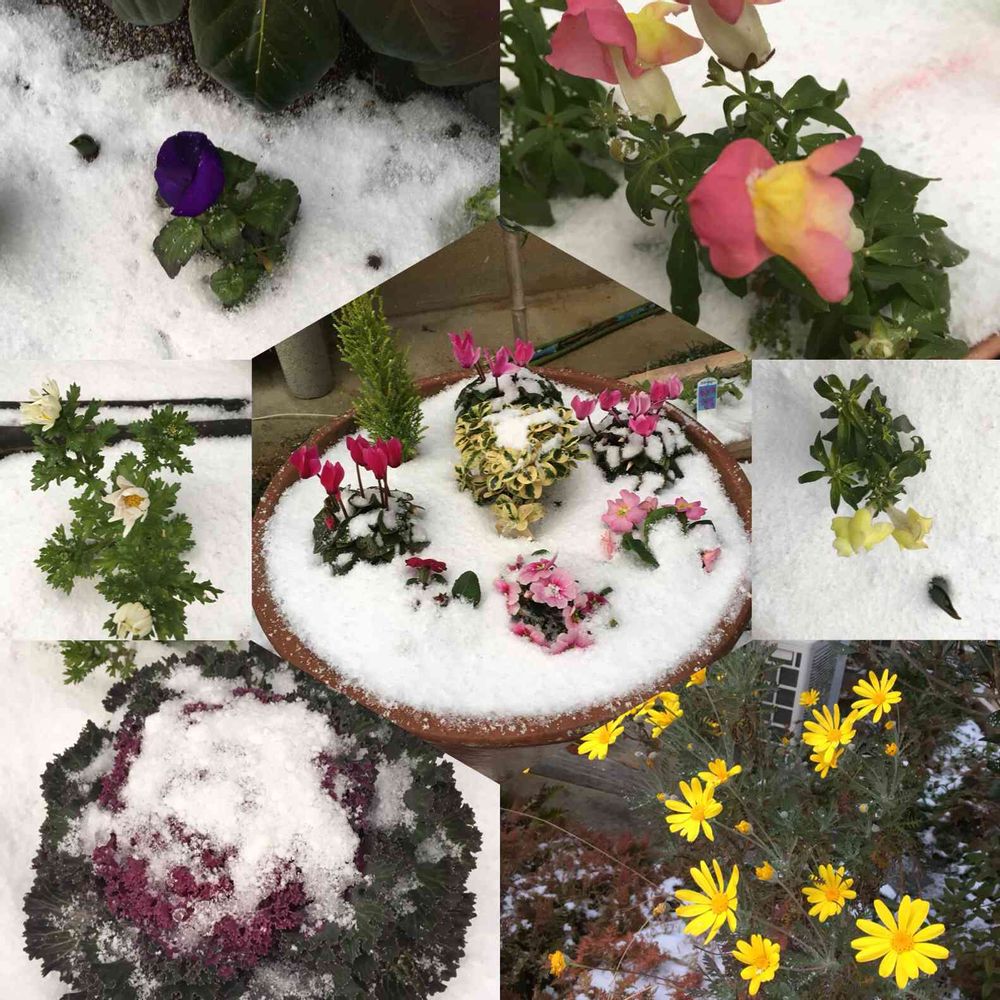こんばんは❗️今日は寒かったですね😨庭に雪が積もりました💦頑張って咲いてます🌼