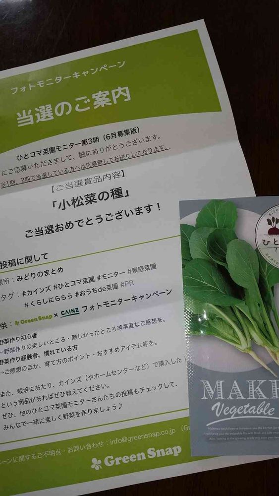 フォトモニターキャンペーン、ひとコマ菜園モニターに当選しました‼️