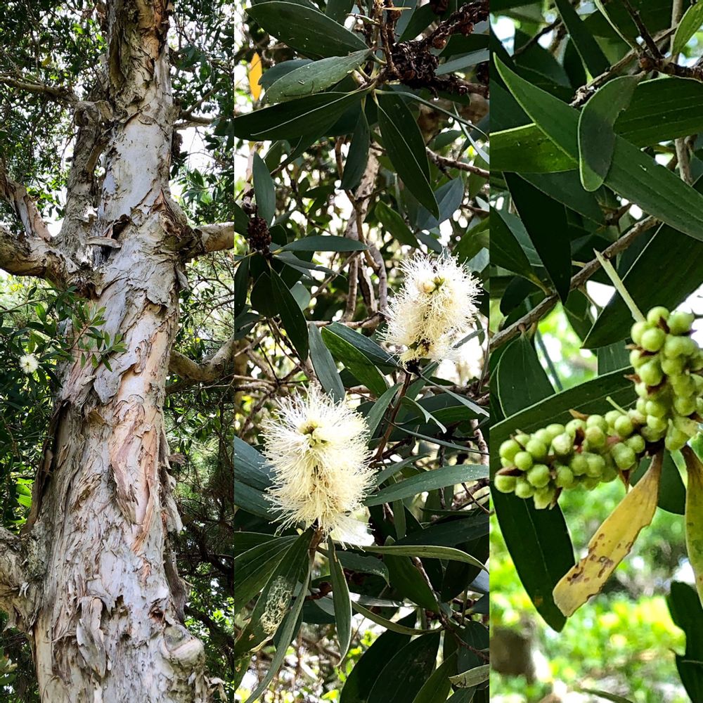 以前、ブラシノキをカユプテと間違えて投稿してしまいました😅 花と実の形状がソックリです。(フトモモ科)