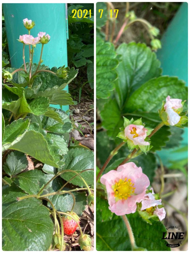 お出かけ先,ピンク色の花の苺,被災地の皆様にエールの投稿画像