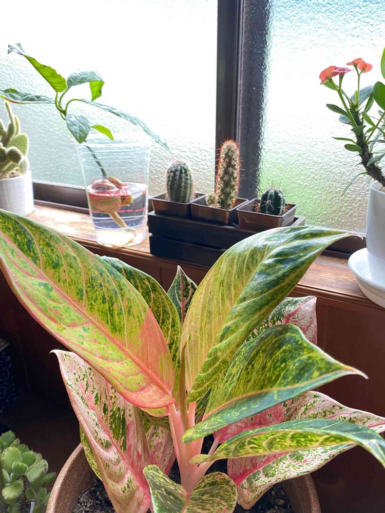 うちのアグラオネマにはピンクや赤色は入ってないので