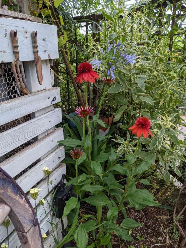 アガパンサスも確認デキルでしょ… エキナセアの開花数も増えてるし… けっして使い回しではないっ!! と強く主張したい😤 こ、小声…かすかに震えてる 植えている植物の種類・数は前投稿をただちに確認、前投稿にいいねを押してくれてもよい(笑)