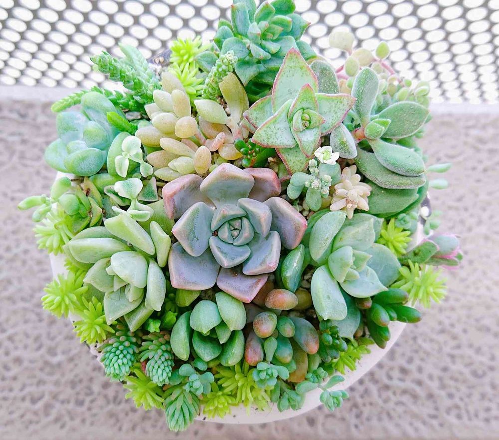 素敵な多肉ちゃん達のおかげで、不器用でセンスなしでも可愛く出来ました✨(お花付きなのです🌼)