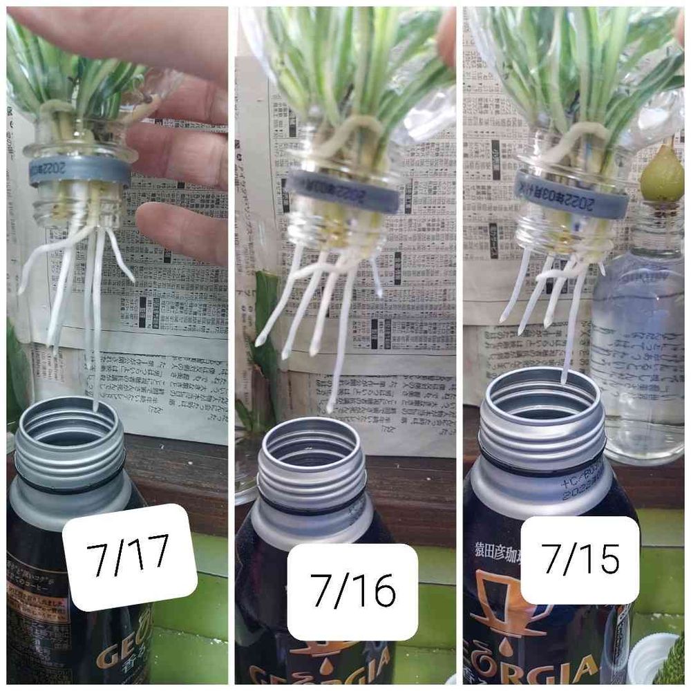 オリズルランのライナーで増えた分を空き缶に差していたら明らかにペットボトルに差していたものより根の成長が早くてビックリ👀‼️