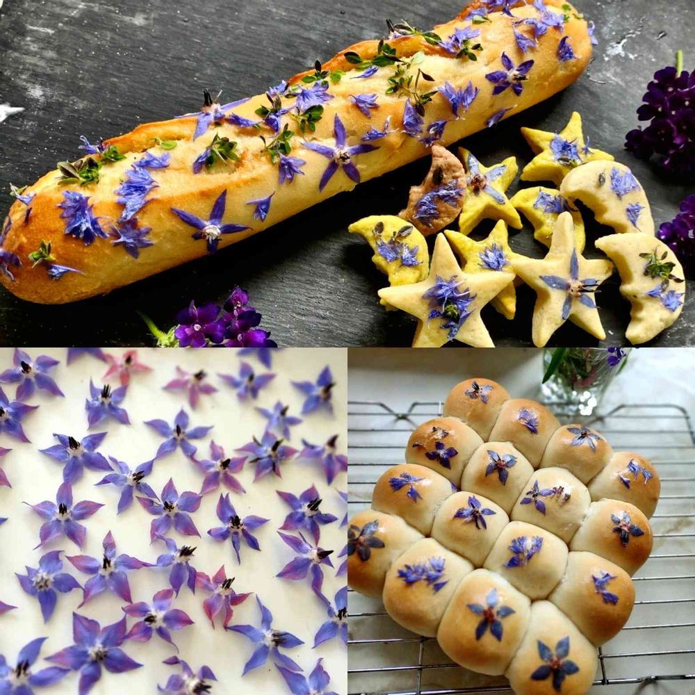 ボリジとコーンフラワーとイングリッシュラベンダーとレモンタイムを使ってパンとクッキーを作った🌟🌜