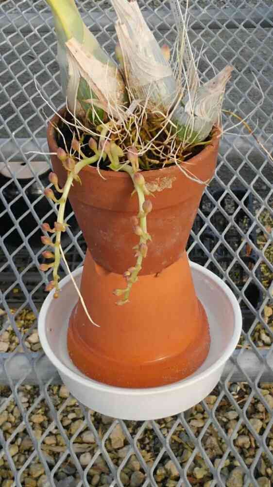 受け皿に水を張って、その中に逆さにした素焼き鉢を入れれば、「湿りすぎない腰水栽培」になります🎵