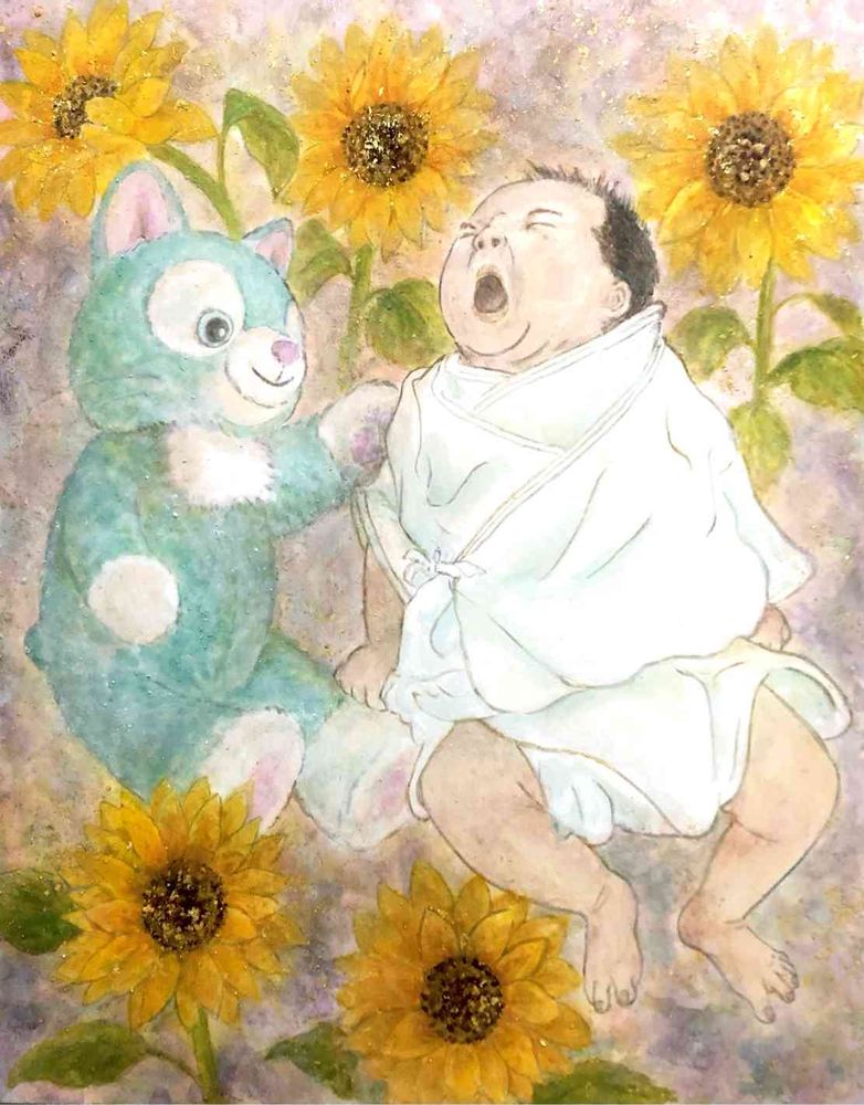 ひまわりと赤ちゃん「泣く子は育つ夏」