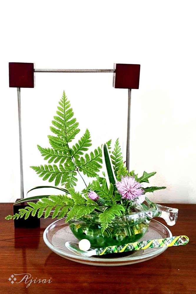 アザミとシダのコラボ、涼しげで素敵ですね🌸🌿 パールが良いですね✨