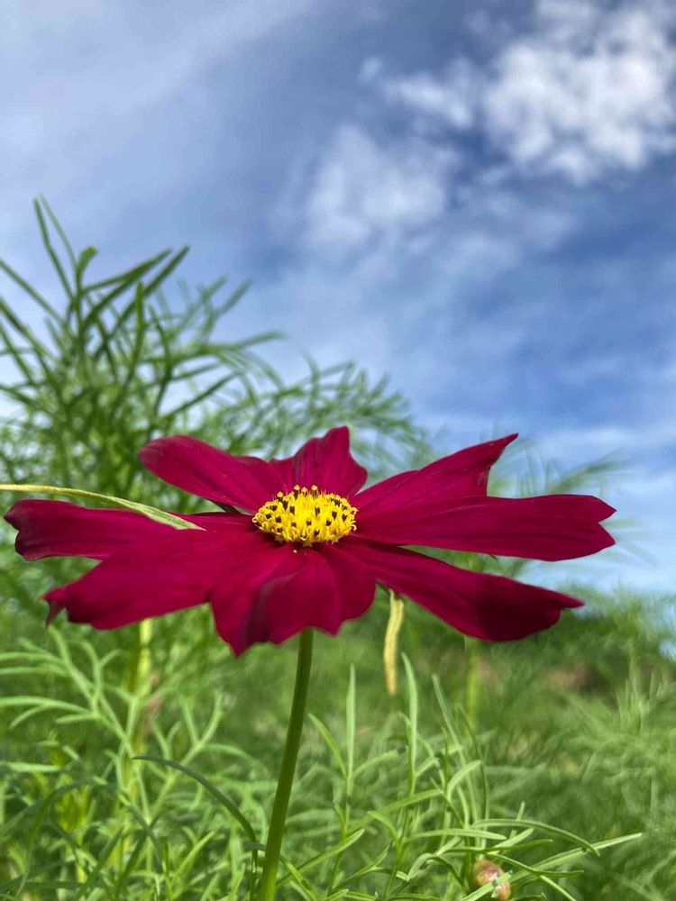 細い茎なのに、キリッと青空に向って咲いているのがたくましい。