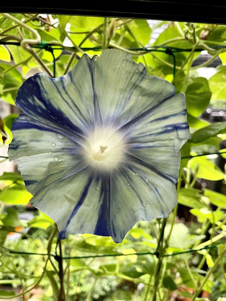 中庭ネットの上に咲いてるから脚立に乗って内側に方向変えて室内からのpic。