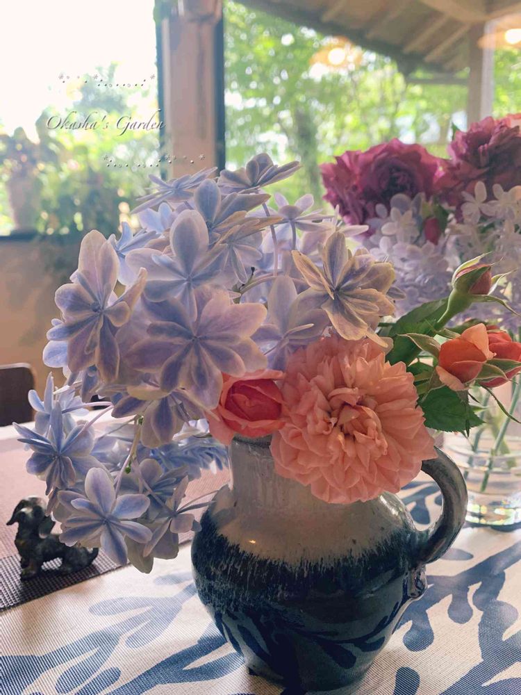 おかーしゃさんの庭、薔薇🌹も紫陽花💠もまだまだ綺麗ですね〜