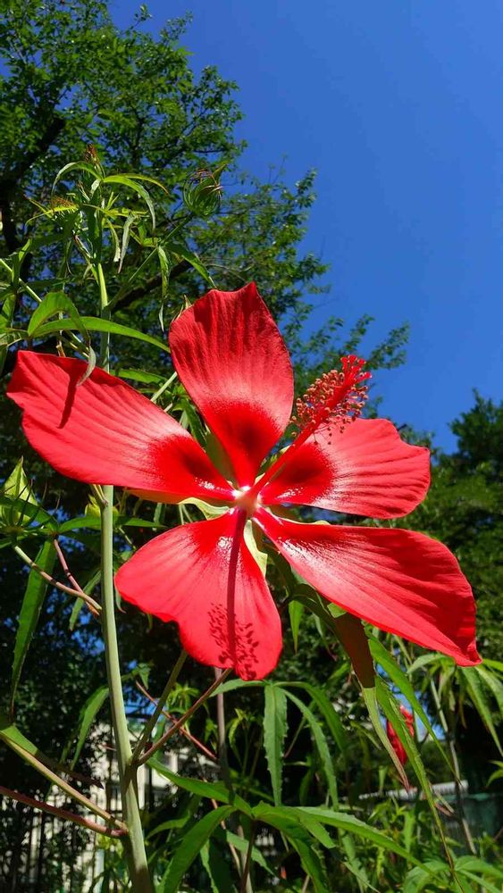 真っ青な空に真っ赤なモミジ葵のコントラスト~