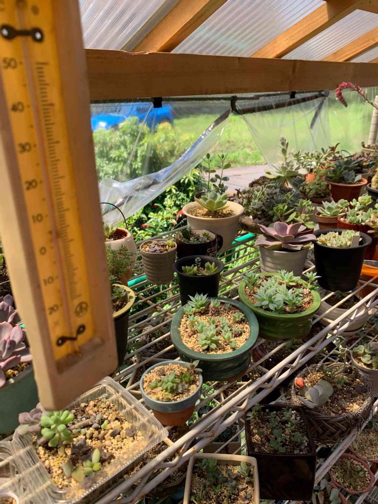 昨夜寝付けず3時まで目が覚めていたので、今朝は起きたら既に多肉棚上は30℃でした、今現在40℃。
